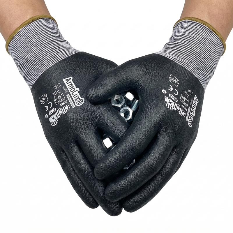 ARMOLUX Coated, nitrile glove with stripes on the palm